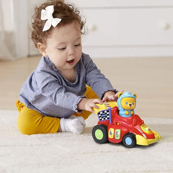 • Al pulsar al piloto o empujar el vehículo hacia atrás, el vehículo avanza como por arte de magia, sus luces se encienden y se activan voces y sonidos.