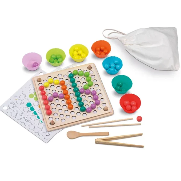 Tres diferentes formas para poner las bolas en las plantillas, pinzas, palillos y cuchara. Ideal para el desarrollo de los pequeños. Hay 8 plantillas y 2 más para que las crees tú mismo.