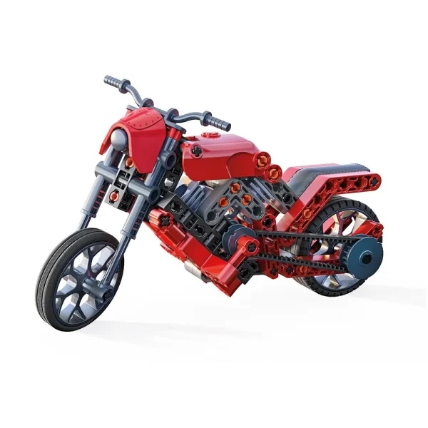 ¡Un kit científico «hecho en Italia» para divertirse ensamblando una motocicleta Roadster o un dragster! El kit contiene más de 130 piezas para construir 2 modelos diferentes equipados con mecanismos de transmisión. El manual ilustrado explica cómo ensamblar la motocicleta Roadster paso a paso. Muchas piezas especiales, como el módulo de transmisión, los engranajes, las bielas, los pistones y muchas más permiten observar cómo funcionan los vehículos. La aplicación «Science & Play Build» integra la experiencia de juego al proporcionar una ayuda de ensamblaje para todos los modelos gracias a las animaciones 3D interactivas.