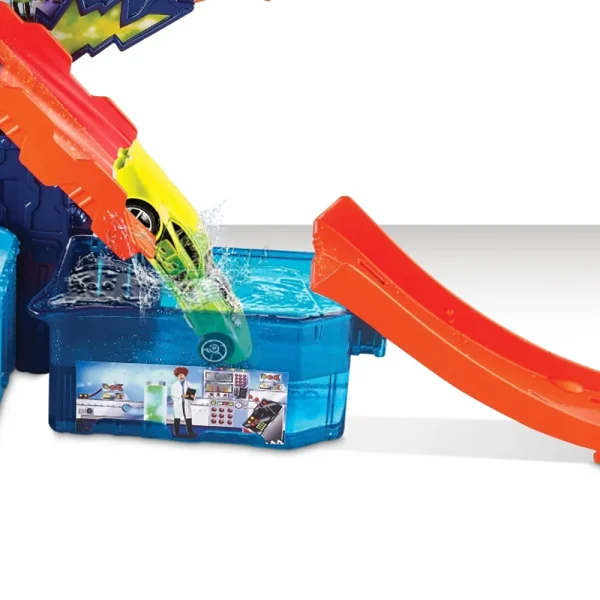 Descubre un mundo lleno de diversión con Hot Wheels® City Color Shifters™ Laboratorio Científico™, donde los locos experimentos de cambio de color pueden salirse de control, ¡a jugar! Un científico loco ha atrapado un vehículo Color Shifters™ bajo la cascada de cambio de color y está experimentando con todo tipo de combinaciones de colores alocadas y divertidas. Los niños deben ayudar al vehículo a escapar. ¡Adéntrate en este emocionante viaje lleno de acción! Lanza tu vehículo a la acción, corre alrededor de la pista y libera el vehículo atrapado para ponerlo a salvo. ¡Cuidado! Parece que te ha atrapado el científico loco. Cuando pulsas la palanca de liberación, el vehículo cae en el tanque de abajo para que su color vuelva a la normalidad. A los niños les encantará la emoción de intentar escapar del laboratorio del científico loco y ver todas las combinaciones de colores salvajes y alocadas. Incluye tres zonas diferentes de cambio de color y viene con un vehículo Color Shifters™. Puedes conectarlo a las pistas Hot Wheels® existentes para ampliar tu mundo de carreras. Cada uno se vende por separado. Sujeto a disponibilidad. No apto para algunos vehículos Hot Wheels®.