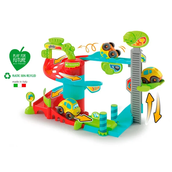 El coche incluido en el juego se cae al bajar por la pista dando espectaculares volteretas y estimulando la curiosidad del niño.